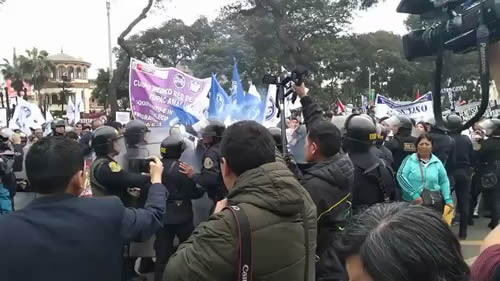 Los médicos y doctores agremiados a la Federación Médica Peruana (FMP) fueron reprimidos este miércoles por agentes de seguridad en el marco del inicio del paro nacional de 48 horas para exigir mejoras laborales y brindar una solución al desabastecimiento en centros sanitarios.