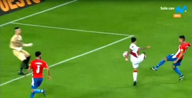 A los 42 minutos, Yoshimar Yotún coronó con un espectacular tijeretazo un pase largo que por poco se pierde y marcó el segundo gol para el Perú.