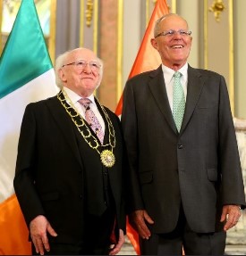 El presidente de la República, Pedro Pablo Kuczynski, recibió hoy en Visita Oficial a su homólogo de Irlanda, Michael D. Higgins, y destacó el interés de estrechar los vínculos políticos, económicos y culturales entre el Perú y la nación europea.