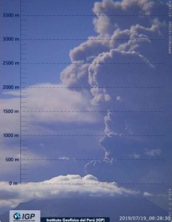 La pluma de cenizas y material volcánico alcanzó los cinco kilómetros, informa el Instituto Geofísico del Perú, que detalló que se ha observado una señal sísmica asociada al registro de una explosión ocurrida a las 2:35 en el volcán Ubinas. Segistraron dos fuertes explosiones esta madrugada.