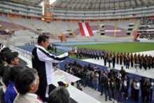 Durante la ceremonia realizada en el Estadio Nacional y que contó con la masiva asistencia del personal de las Fuerzas Armadas, el jefe de Estado pidió que la competencia deportiva se realice de manera limpia.