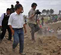 También aseveró que se debe investigar y sancionar severamente los presuntos actos de corrupción cometidos en torno al mal uso de recursos para la reconstrucción. No obstante, aclaró que ese tema no puede detener los trabajos que se vienen realizando. “Se tiene que investigar y sancionar, pero no me detendré en este tema mientras la gente siga viviendo en esteras”, manifestó. Antes de despedirse de la gente, se comprometió en regresar a Pisco y Chincha para continuar con la supervisión de los trabajos.