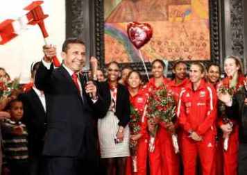 El plantel nacional enrumbó a la Casa de Gobierno desde el aeropuerto Jorge Chávez, inmediatamente después de aterrizar a la capital. En esta recepción en la Casa de Gobierno, las destacadas deportistas también tuvieron un primer emotivo encuentro con sus padres y demás familiares, quienes llegaron con pancartas en mano.
