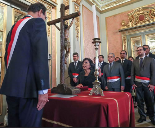 El jefe de Estado, Martín Vizcarra, juramentó esta tarde a los nuevos ministros de Trabajo y Promoción del Empleo; Comercio Exterior y Turismo; y de Cultura durante una ceremonia realizada en el Salón Dorado de Palacio de Gobierno.