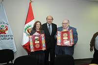 En el Ministerio de Cultura. el titular del sector, Dr. Juan Ossio Acuña, entregara el Disco de Oro a Encantos Andinos, propuesta musical conformada por los destacados exponentes de nuestro folclor Pepita García Miró y Jaime Guardia.