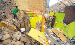 Parte de una vivienda precaria ubicada en la Avenida Prolongación Tacna cuadra 2 del Rímac, se derrumbó esta mañana sin dejar víctimas, pero reveló el riesgo que corren otras 15 viviendas cercanas en similar condición estructural.