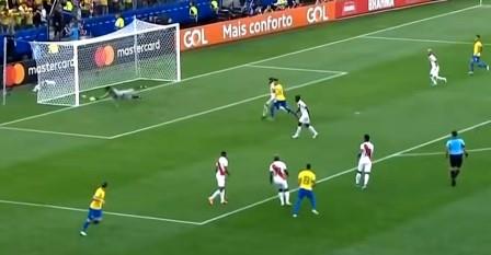 En un intento por poner el balón en juego, el tiro del arquero peruano rebotó en el cuerpo de Firmiño y luego en el poste. El brasileño tomó el rebote y lo utilizó para disparar y conseguir un gol.