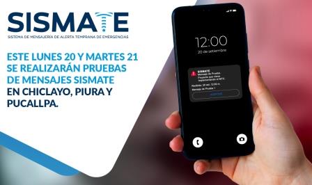El 20 y 21 de setiembre llegarán mensajes de alerta a los celulares en las provincias de Chiclayo, Piura y Coronel Portillo.