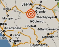 En Chiple, Cutervo, fue sentido con una intensidad de nivel II en la escala modificada de Mercalli.
