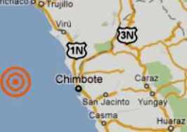 El epicentro del temblor, ocurrido a las 03:36 horas, se ubicó en el océano a 81 kilómetros al oeste de Chimbote, departamento de Áncash, con hipocentro a 68 kilómetros de profundidad, según informa el Instituto Geofísico del Perú.