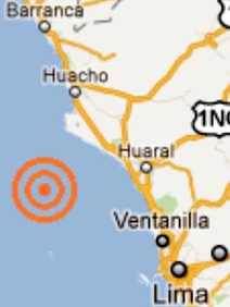El epicentro del temblor, ocurrido a las 16:50 horas, se ubicó en el océano frente a Huaral, 59 kilómetros al suroeste de Huacho, provincia de Chancay, departamento de Lima, con hipocentro a 64 kilómetros de profundidad, según informa el Instituto Geofísico del Perú.