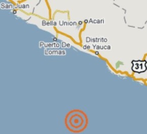 El epicentro del temblor, ocurrido a las 10:30 horas, se ubicó en el océano, a 59 kilómetros al suroeste de Yauca, departamento de Arequipa, con hipocentro a 30 kilómetros de profundidad, según informa el Instituto Geofísico del Perú.