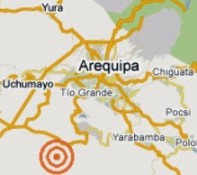 El epicentro del temblor, ocurrido a las 04:30 horas, se ubicó a 27 kilómetros al suroeste de Arequipa, departamento de Arequipa con hipocentro a 33 kilómetros de profundidad, según informa el Instituto Geofísico del Perú.