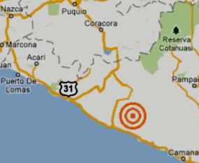 El temblor fue sentido en Caravelí con intensidad de nivel II en la escala modificada de Mercalli.