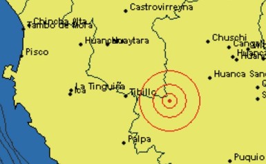 Un sismo de 4,3 grados en la escala de Richter sacudió hoy a Tibillo, en el departamento de Ayacucho.