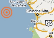 El epicentro del temblor, ocurrido a las 19:25 horas, se ubicó a 83 kilómetros al oeste de San Vicente de Cañete, departamento de Ica, con hipocentro a 48 kilómetros de profundidad, según informa el Instituto Geofísico del Perú.