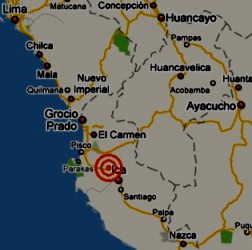 El movimiento telúrico tuvo su epicentro a 24 kilómetros al Noroeste de Ica (Dpto. Ica ), a 65 kilómetros de profundidad y se produjo a las 08:05 horas (13:05 GMT)