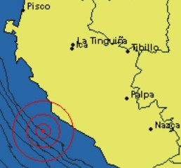 El temblor ocurrió a las 15:35 horas y su epicentro se ubicó a 91 kilómetros al suroeste de Ica, departamento de Ica, con hipocentro a sólo 15 kilómetros de profundidad, según el Instituto Geofísico del Perú.