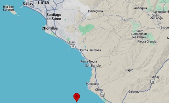 El temblor, ocurrido a las 12:34:55 h, tuvo epicentro en el mar, 15 km al suroeste del distrito de Chilca, provincia de Cañete, departamento de Lima, con hipocentro a 50 km de profundidad, informa el Instituto Geofísico del Perú.