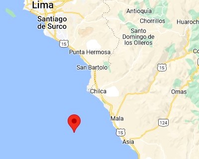 El temblor, ocurrido a las 02:04:18 h, tuvo epicentro en el mar, 28 kilómetros al oeste del distrito de Mala, provincia de Cañete, departamento de Lima, con hipocentro a 48 kilómetros de profundidad, reporta el Instituto Geofísico del Perú.