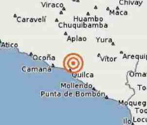 El temblor, ocurrido a las 07:40:10, tuvo epicentro ubicado en el continente, 15 kilómetros al norte del distrito de Quilca, provincia de Camaná, departamento de Arequipa, con hipocentro a 85 kilómetros de profundidad, según el Instituto Geofísico del Perú.