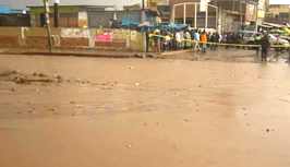 El fenómeno natural, que empezó después de las 15:00 h, ha formado riachuelos y los peatones tienen dificultad de transitar por ello, e incluso vehículos.