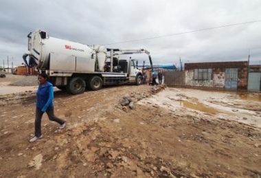 Trabajadores del Organismo Técnico de la Administración de los Servicios de Saneamiento (OTASS) y de las empresas de agua y desagüe (EPS) Emapavigssa y Emapica llegaron este sábado a Tacna para trabajar en el aniego que afectó viviendas y calles del sector de Tomasiri, ubicado al lado del control aduanero.