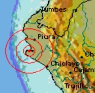 El primer sismo de Piura tuvo como epicentro a Sechura y alcanzó 5.8 grados en la escala de Richter. Su profundidad fue de 33 kilómetros y ocurrió a las 05.04 horas (10.04 GMT) de hoy, 15 de febrero.