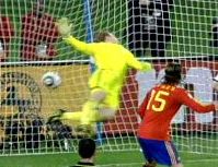 El balón llegó en un córner desde la izquierda, lanzado por Xavi Hernández, tras lo cual Puyol dio un preciso brinco para alcanzar la pelota y enrumbar el cañonazo hacia la red alemana, donde, pese al intento de su arquero, éste no pudo contener el proyectil.