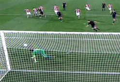 En la siguiente jugada, el paraguayo Antolín Alcaraz derribó a David Villa en el área y Xabi Alonso disparó el penal, que lo metió, pero Batres aseguró que un jugador español entró antes de tiempo al área, por lo cual determinó repetir la definición.