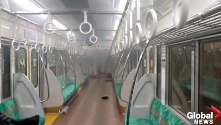 La policía detuvo a un hombre que blandía un cuchillo, roció líquido inflamable en el tren y le prendió fuego a varios asientos.