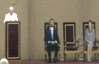 "Benqueridos amigos, reitérovos o meu agradecemento pola vosa amable benvida e a vosa presencia neste aeroporto. Renovo o meu agarimo e proximidade aos amadísimos fillos de Galicia, de Cataluña e dos demais pobos de España. Ao encomendar à intercesión do Apóstolo Santiago a miña estadía entre vós, prégolle a Deus que as suas bendicións vos alcancen a todos. Moitas gracias" (Queridos amigos, os reitero mi agradecimiento por vuestra amable bienvenida y vuestra presencia en este aeropuerto. Renuevo mi cariño y cercanía a los amadísimos hijos de Galicia, de Cataluña y de los demás pueblos de España. Al encomendar a la intercesión de Santiago Apóstol mi estancia entre vosotros, suplico a Dios que sus bendiciones alcancen a todos. Muchas gracias).