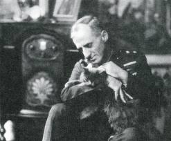 El general Smedley Butler sostiene en brazos a su gato favorito.