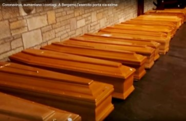 Fila de ataúdes en Bérgamo, una de las ciudades más castigadas por la pandemia