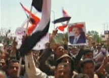 La muchedumbre gritaba: "después de Mubarak, Alí", mientras intentaron marchar hacia la plaza Tahrir (Liberación), que lleva el mismo nombre que la de El Cairo, pero las fuerzas de seguridad instalaron alambres de púa para impedirlo.