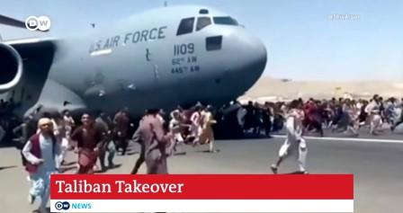 En el aeropuerto de Kabul reinó el caos el lunes por los numerosos despegues y aterrizajes de aeronaves a bordo de las cuales viajaban trabajadores de las misiones diplomáticas extranjeras. Muchos afganos también acudieron al aeropuerto deseando abandonar el país e intentaron tomar por asalto tanto la terminal como los aviones. En medios y redes sociales se publicaron fotos y vídeos de cómo unas personas se encaraman al avión listo a despegar y éste emprende el vuelo con alguien agarrado a su chasis.