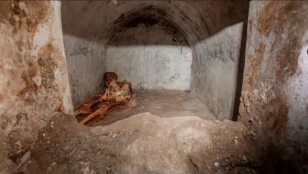 La losa de mármol en el frontón de la tumba indica que el esqueleto, uno de los mejor conservados en Pompeya, es de Marcus Venerius Secundio, esclavo público y guardián del templo de Venus, que logró liberarse y alcanzar un estatus social y económico respetable.