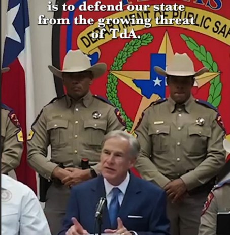 En su discurso en la sede regional del sureste de Texas del Departamento de Seguridad Pública de Texas (DPS), el gobernador también designó a TdA como organización terrorista extranjera, ordenando al DPS elevarla a pandilla de Nivel 1 y crear un Equipo de Ataque de TdA que identificará y arrestará a sus miembros.