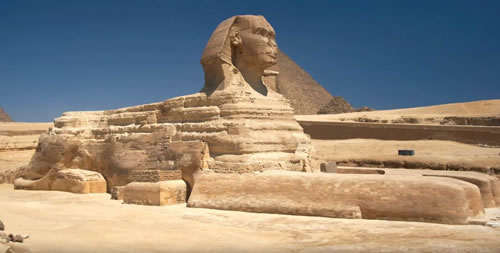 Se cree que la conocida Esfinge en Guiza fue construida por Kefrén, el cuarto faraón de la cuarta dinastía del Imperio antiguo y se asemeja a un león con cabeza humana.