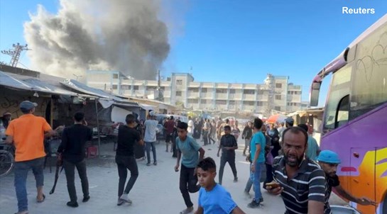 El régimen de Israel bombardea una escuela de la ONU que alberga a los palestinos desplazados en el sur de la Franja de Gaza y destruye el edificio del centro.