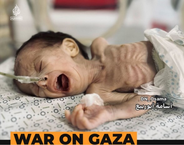 Uno de los niños que evidencian inanición extrema en Gaza debido al cerco israelí que impide a diversos países entregarles comida