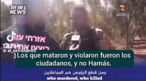 En la traducción del video, el soldado manifiesta que las violaciones y otros desmanes no los cometió Hamás, que atacó, mató y se fue rápido; aclara más bien que los perpetradores fueron “ciudadanos” (traducción de ezrajim, que también significa ՙciviles’). O sea que el entrevistado, en realidad, dice “No fuimos los militares, fueron los civiles”. Si es así, algo anda mal en la sociedad israelí.