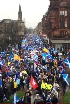 Unas 100.000 personas, según los convocantes, se han manifestado este sábado en Glasgow, la ciudad más poblada de Escocia, por el «derecho a decidir» de los escoceses y a favor de un segundo referéndum de independencia del Reino Unido.