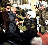Manolis Glezos Mikis Theodorakis en las protestas de ayer