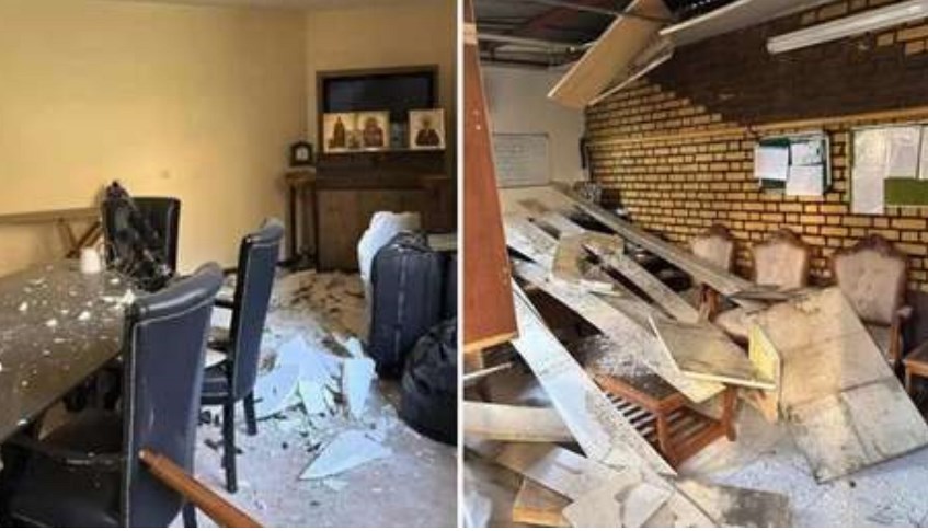 Estos sionazzis y los yankis agresores tiran bombas tan grandes que afectan a casas o sitios vecinos, eso de iglesia fue porque destruyeron antigua embajada de eeuu, es CRIMINAL lo que hace Rata Vieja naranja, y el fasciscta matanyahu satanyahu mata niños, robbatierras , igual le quedan pocos dias de seguir fregando al mundo,estas porquerias no son eternas.
