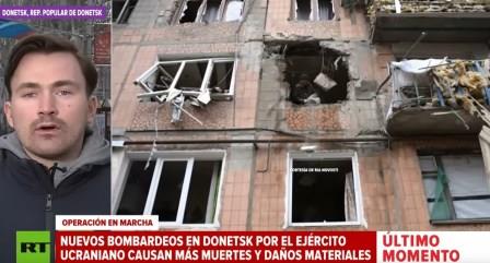 Ataque ucraniano contra Donetsk mata civiles pero Ucrania y medios europeos y de EE. UU. difunden que fue ataque ruso.