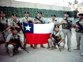 La calidad de la fotografía y la sofisticación de las metralletas que portan soldados con la bandera chilena sugieren que no se trata de una imagen de la era Pinochet, sino de soldados chilenos al servicio de la empresa privada de seguridad Xe Services (antes Blackwater).