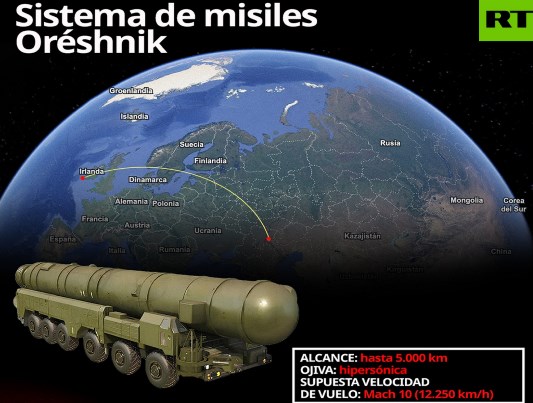 Moscú podría utilizar el sistema de misiles balísticos Oreshnik para el ataque contra Alemania, añadió.