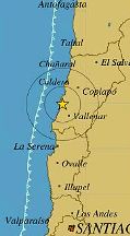El epicentro del movimiento telúrico se ubicó en Atacama, 76 kilómetros al sur de Copiapó, a las 14:52 horas GMT, a una profundidad de 35 kilómetros.