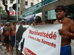 Mientras tanto, cientos de activistas indígenas marcharon por las calles de Río para entregar una petición que exige un trato más justo con respecto a la tierra y otros derechos.